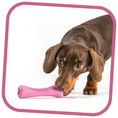 Beco Bone é um osso extra forte em borracha natural, perfumado com baunilha.