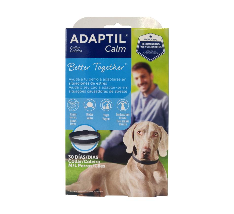 Adaptil Collar Collar convenient and easy to use. It diffuses the canine calming pheromone steadily (even when the dog is outdoors). The dog's body temperature and close contact warms the collar and promotes the diffusion of pheromones into the surrounding environment. It is essential that the Adaptil Collar is in close contact with the dog's skin at all times. Adaptil Collar is ideal for: • Socializing the dog; • Travel (for dogs that travel frequently or for long trips and/or going to new destinations, such as vacations, or a new home, etc.); • Stay in a canine kennel/hotel; • Training programs; • Noisy events (storms or fireworks), especially for dogs that live primarily outdoors (outdoors) and cannot be kept indoors during such events; • Stay alone at home (especially for outdoor dogs). Each collar lasts up to 4 weeks. It can be replaced when necessary. Instructions for use • Place a finger on the plastic loop located inside the collar near the buckle; • Using this loop, pull the thin plastic to unroll the collar; • Tighten the collar; • Place through your dog's head. Tighten loosely around the dog's neck; • Tighten the collar to fit and comfortably contact your dog's skin; • You must be able to place no more than 2 fingers between the collar and the dog's skin; • Ensure that the collar is fixed to the buckle; • Cut off the excess portion of the collar. Note on puppies: As the puppy grows, it is important to regularly check the fit of the collar to make sure it is not too tight. Adaptil Collar has been proven to work on all dog breeds as long as it is placed correctly. The canine appeasing pheromone is released almost immediately. The collar does not work when it is wet, but it diffuses the pheromone again once it is dry. If your dog wears another collar it is important to ensure that the Adaptil Collar remains in contact with the skin. Please note that Adaptil Collar cannot be used to apply a leash. Do not use the collar on dogs with extensive skin lesions. Do not open the protective pouch until you are ready to use the product.