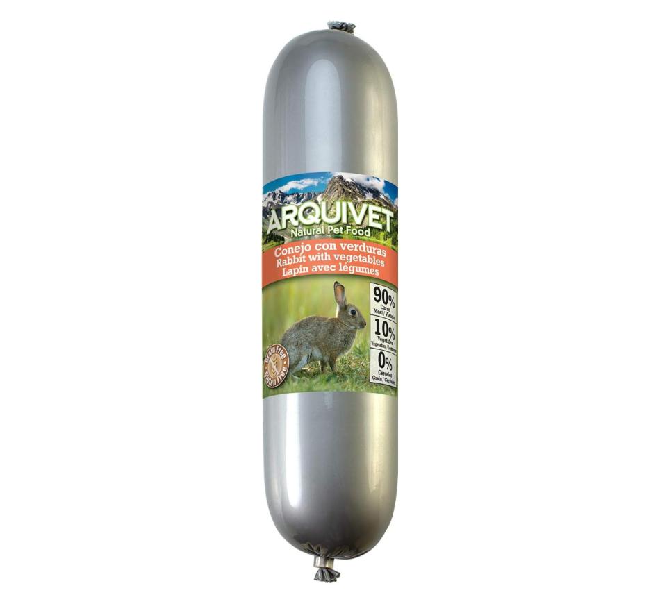 Arquivet Sausage Rabbit is a complete and balanced wet food for all dogs from 3 months of age. An excellent option to offer your dog, he will be delighted with this tasty sausage-shaped wet dog food with 90% meat. Its block format allows you to divide it easily and the way you want: in slices, strips, squares... You can also store it in the fridge to use it for a couple of days.