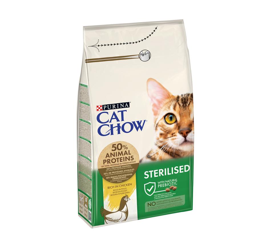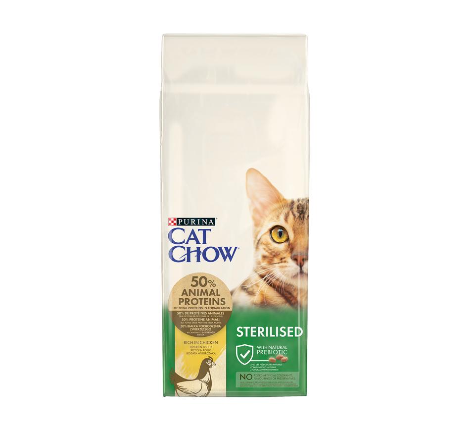 Cat Chow is rich in chicken, and over 50% of the total protein comes from animal sources to meet your cat's natural needs. The recipe also includes chicory, a natural prebiotic source proven to help improve healthy digestion, so your cat gets more benefit from the food.