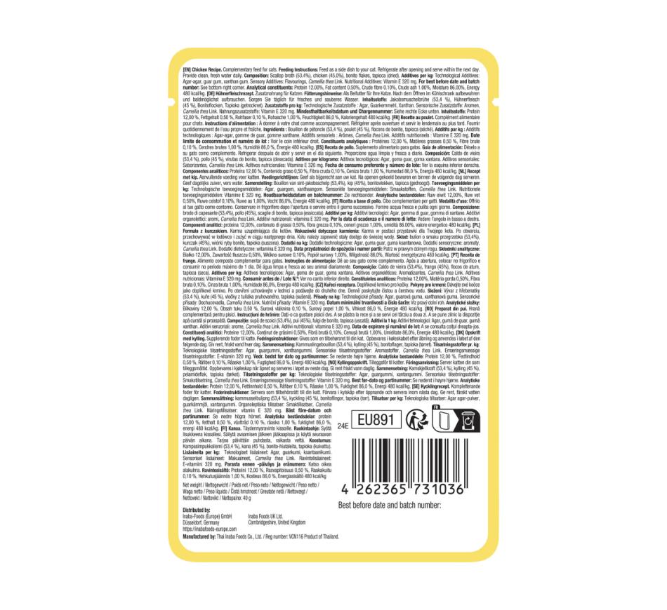This delicious gelatin-based complementary food, containing succulent pieces of chicken and cheese, is perfect for cats who appreciate soft textures and natural flavors. It offers healthy, tasty, grain-free nutrition with a high moisture content, essential for promoting effective hydration and proper urinary system function. It contains vitamin E to support the immune system and green tea extract as a natural antioxidant.