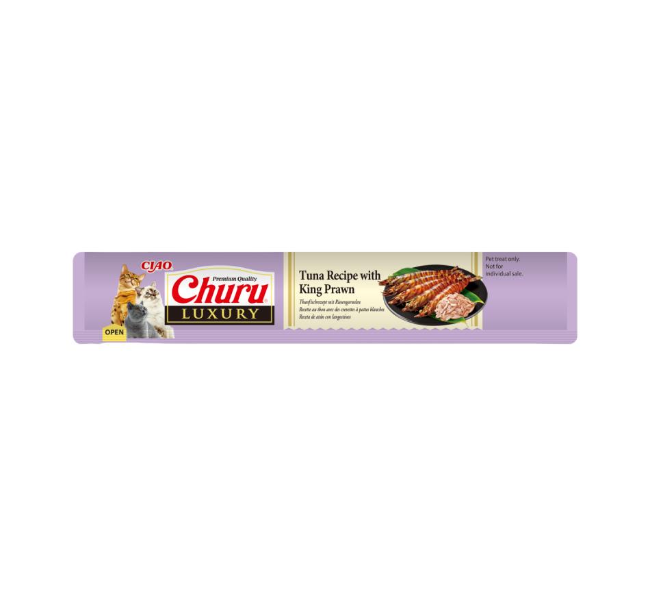 Pamper your feline friend with the irresistible flavor of Churu Gato Luxury Recipe Tuna and Shrimp!