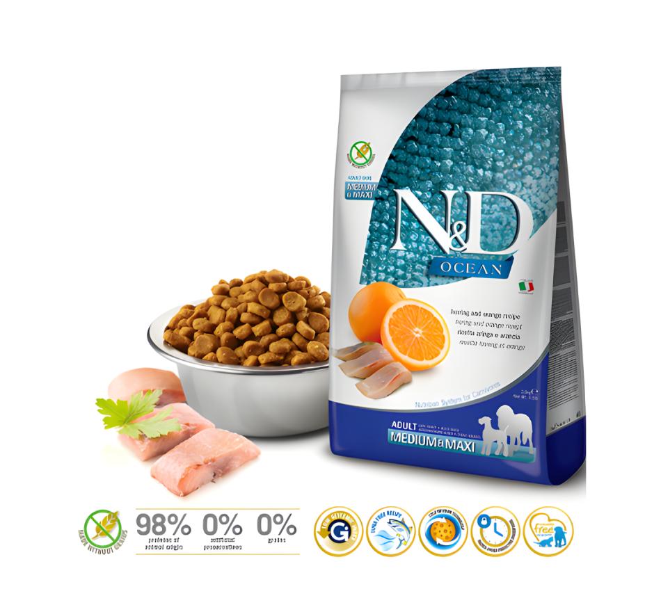 Discover the best nutrition for your loyal companion with Farmina N&D Ocean Adult Dog Medium & Maxi Herring Food .