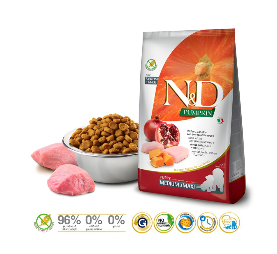 Discover the high-quality nutrition your dog deserves with Farmina N&D Pumpkin Dog Adult Medium & Maxi Chicken . This complete dry food has been carefully formulated to meet the nutritional needs of adult dogs of medium and large breeds, ensuring that every meal is an explosion of flavor and health.