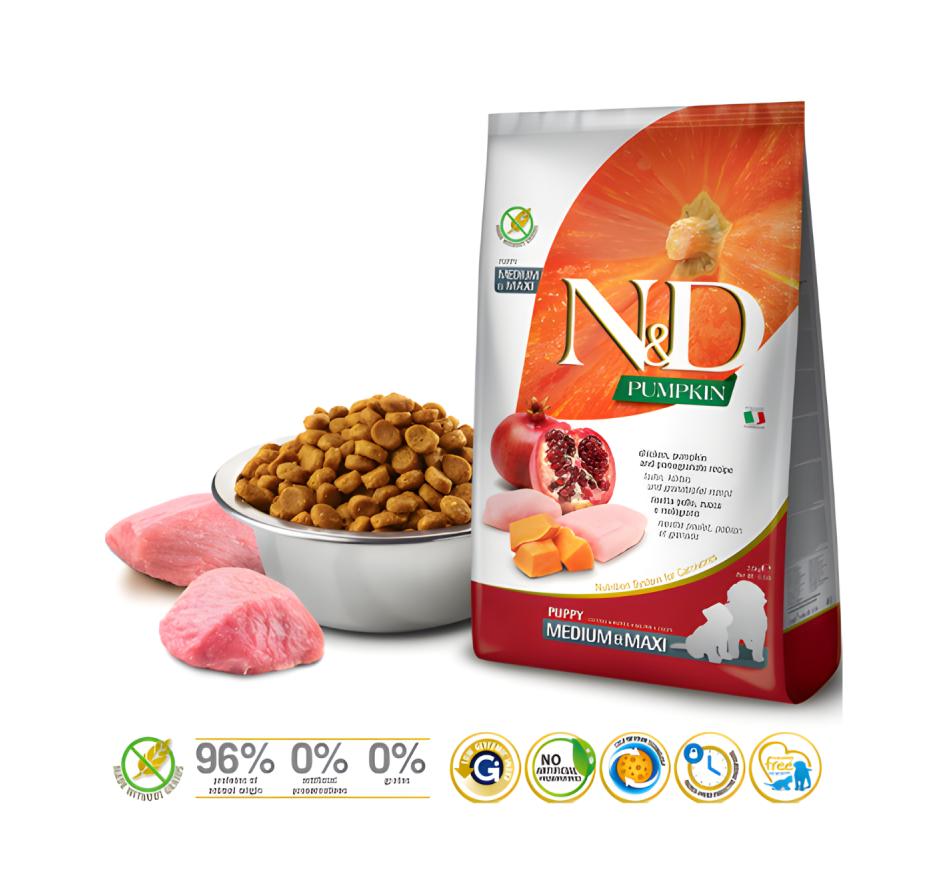 Discover the best for your puppy with Farmina N&D Pumpkin Puppy Medium & Maxi Chicken ! This complete dry food was specially developed to meet the nutritional needs of small and mini breed puppies, as well as pregnant or lactating females.