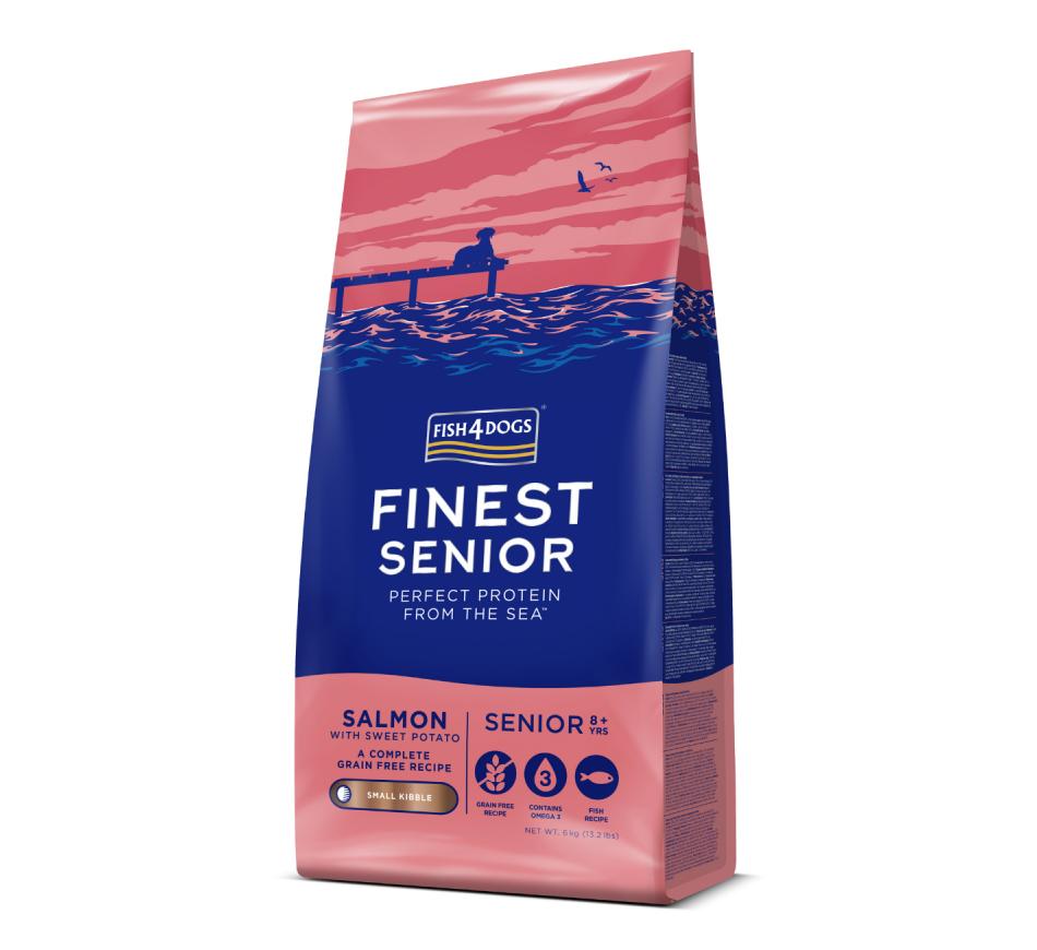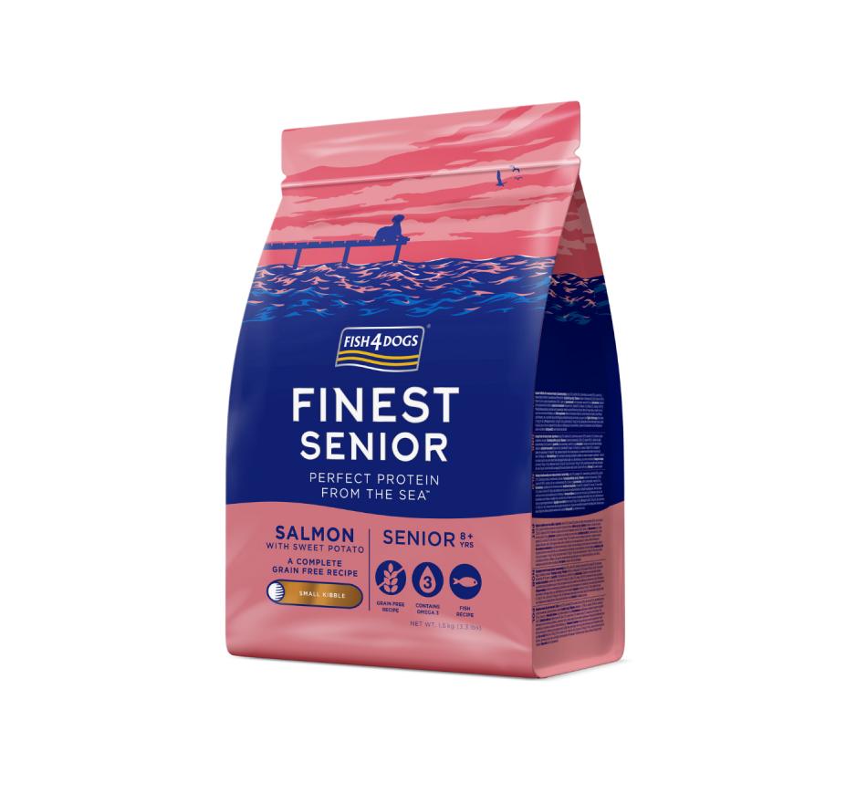 Fish4Dogs Finest Salmon & Potato Senior Dog Mini and Small Breeds is a salmon food that is naturally rich in omega 3, which has many health benefits for older dogs, including supporting healthy joints and helping with coat condition (and skin). And because we know that older dogs can experience changes in their digestion, we've added prebiotics with beta glucans to help maintain good digestive health.