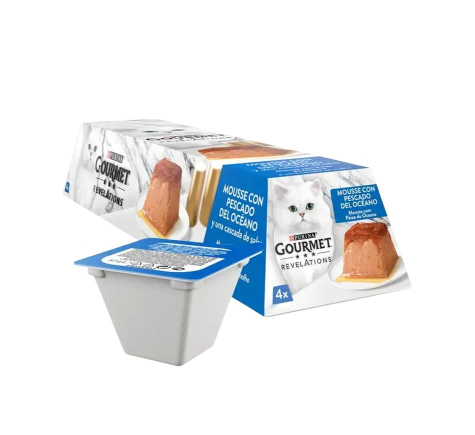 Gourmet Revelations Ocean Fish Mousse with Waterfall Sauce is made with high-quality ingredients, including ocean fish, to provide a nutritious meal. It contains proteins, vitamins, and minerals essential for your cat's well-being.