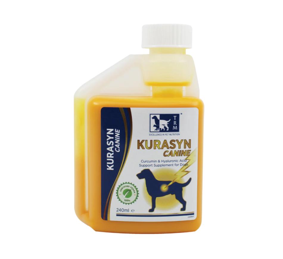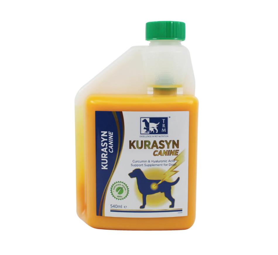 Kurasyn Canine is a complementary food supplement for dogs that contains highly bioavailable curcumin combined with hyaluronic acid. The Turmeric used in the formula has been blended with a natural oligosaccharide and has significantly better absorption compared to Turmeric alone.