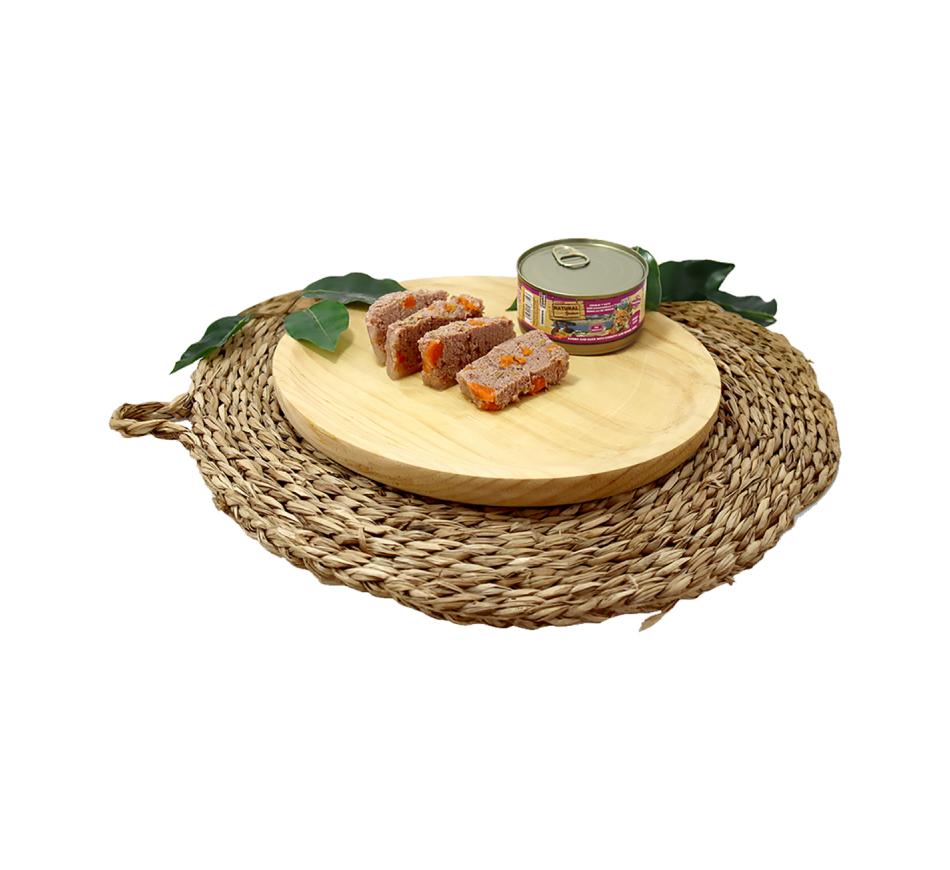 Natural Greatness Cat rabbit, duck carrot and peach is a moist recipe that contains a mix of highly healthy meats such as rabbit and duck.