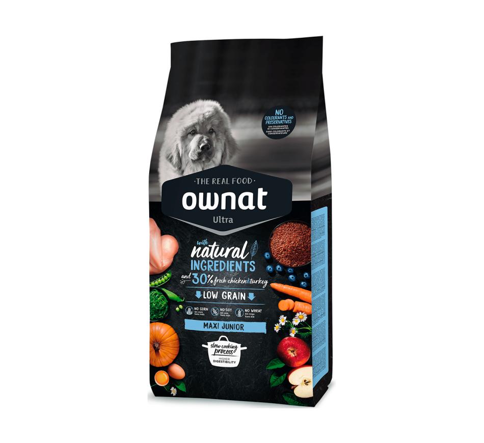 Ownat Ultra Cão Maxi Junior Chicken and Turkey is a complete and balanced food suitable for large breed puppies. It has a high energy content and is rich in proteins to promote healthy growth. The balanced proportion of calcium and phosphorus ensures optimal development of bones and teeth.
