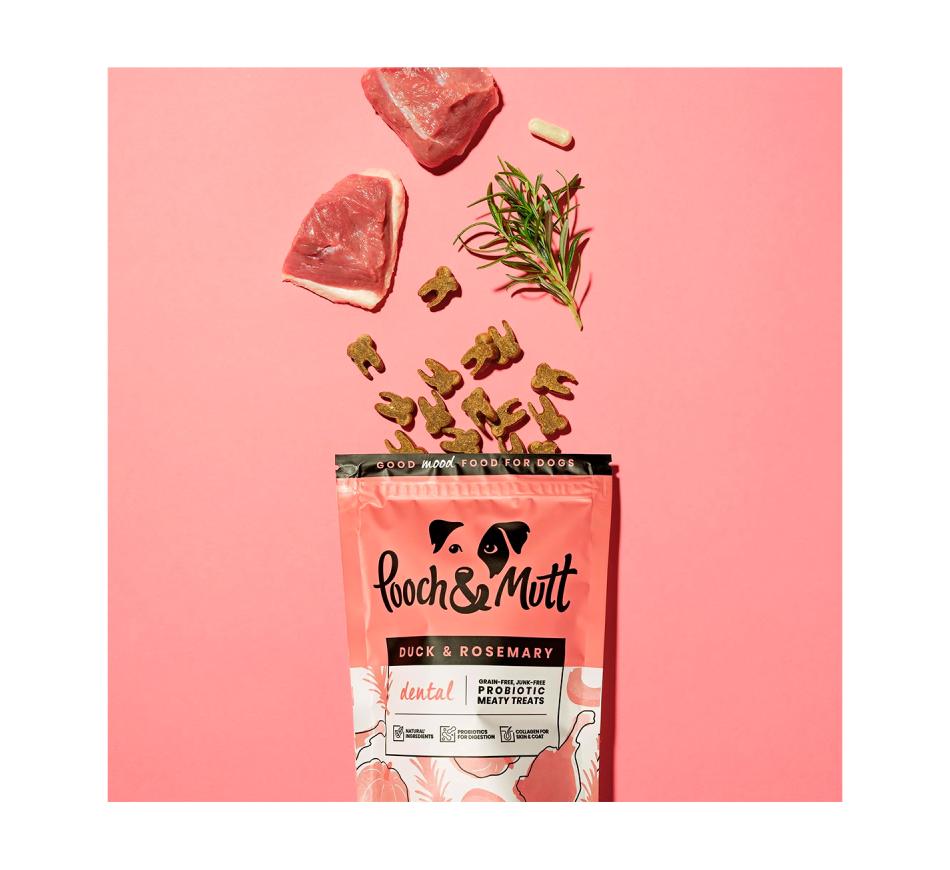 Dental Pato & Alecrim grain free protein snacks with active nutraceutical ingredients that promote well-being, oral hygiene, tartar reduction and gum protection, namely rosemary, sage, collagen and sodium HMP.