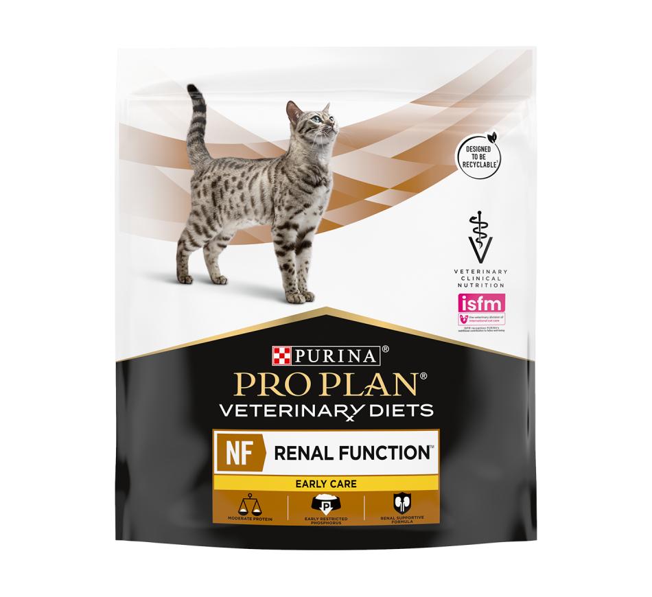 Feline NF Renal Function Early Care is a palatable complete veterinary diet to aid in the management of adult and senior cats in the early stages of chronic renal failure.