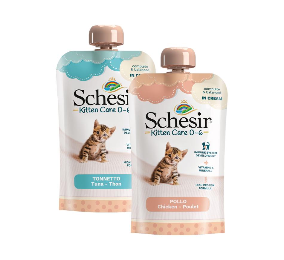 Recommended for kittens - Supplement your kitten's diet with Schesir complete wet and/or dry food for balanced nutrition full of flavor and energy!