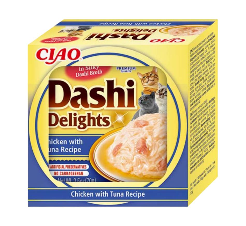 ¡Consiente a tu amigo felino con el irresistible sabor de la receta Churu Gato Dashi Delights Receta de pollo y atún!