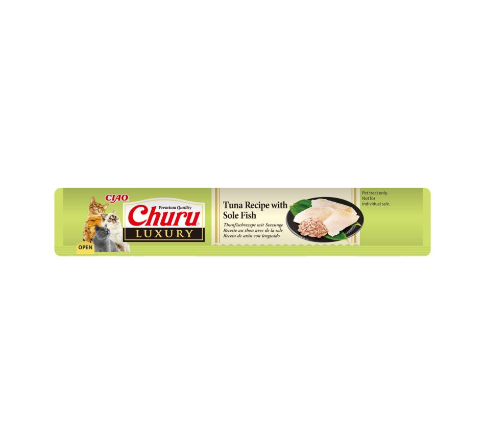 ¡Consiente a tu amigo felino con el irresistible sabor de las golosinas Churu Gato Luxury Receta de atún y lenguado!