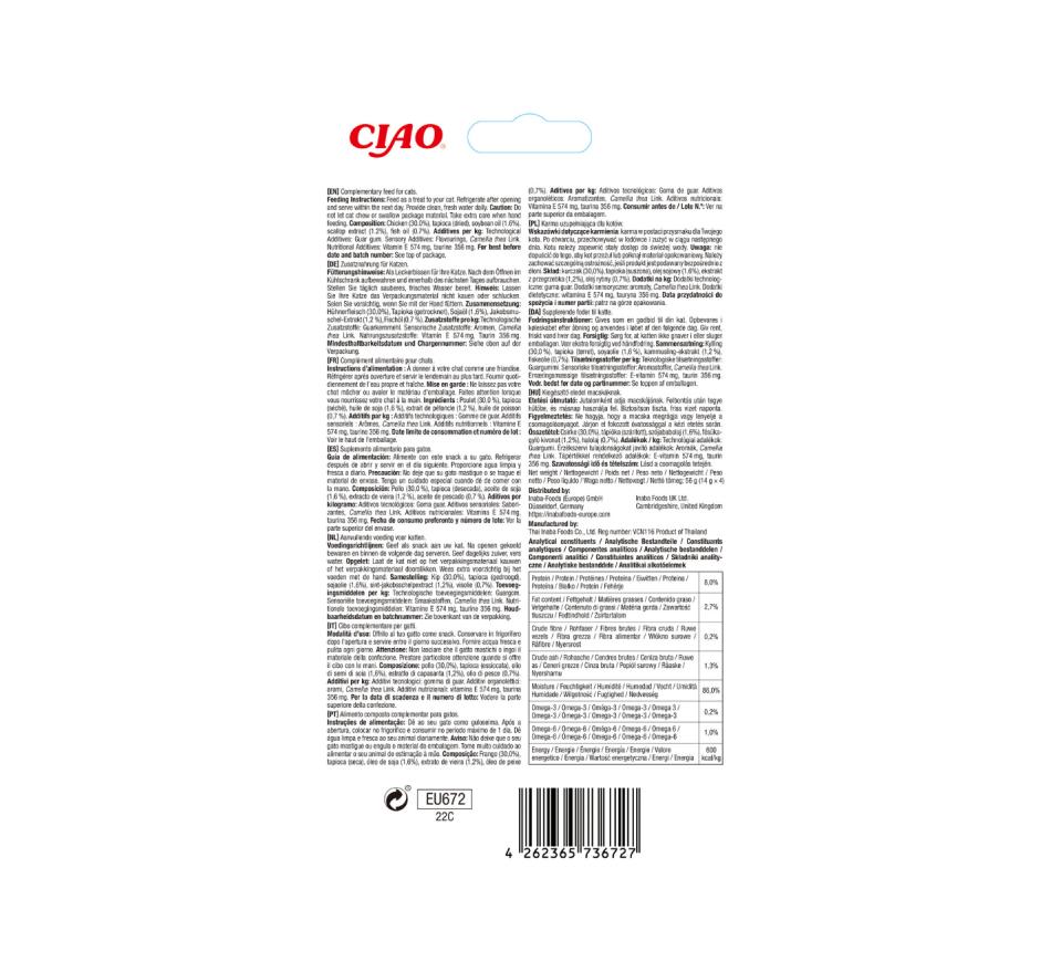 ¡Consiente a tu amigo felino con el irresistible sabor de las golosinas Churu Gato Skin & Coat Receta de pollo!