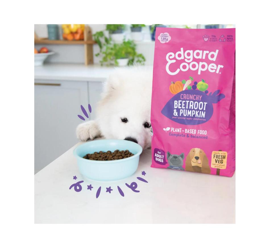 El alimento de origen vegetal para perros adultos de Edgard & Cooper es un alimento completo y equilibrado elaborado a base de frutas y verduras frescas (hasta un 20%), y por tanto rico en proteína vegetal, que ofrece una textura crujiente que hará las delicias del paladar de los perros. exigente y mucha fruta sabrosa. Y como no tiene carne en su composición, este alimento también es beneficioso para aquellos perros que puedan sufrir alguna reacción alérgica o intolerancia relacionada con el consumo de carne.