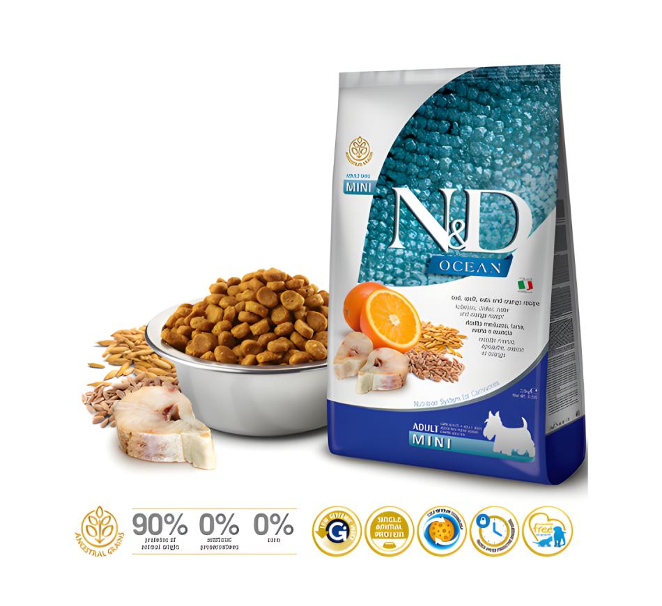 Dale a tu mejor amigo la nutrición que se merece con Farmina N&D Ocean Low Grain perros adultos de tamaño mini con bacalao.