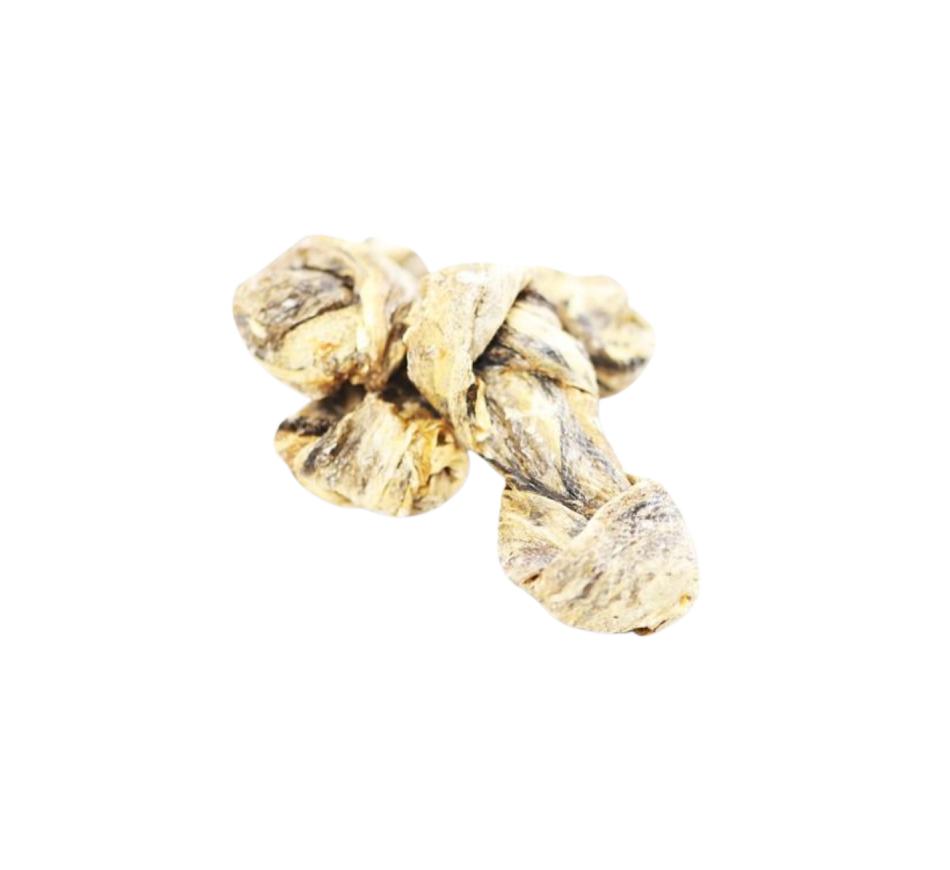 Nuestros crujientes Sea Jerky Fish Knots son deliciosas golosinas de piel de pescado blanco que ayudan a mantener la salud dental de los perros. Con menos calorías que otros snacks de nuestra gama. Con una textura naturalmente rugosa que ayuda a eliminar la placa y prevenir la acumulación de sarro en los dientes.