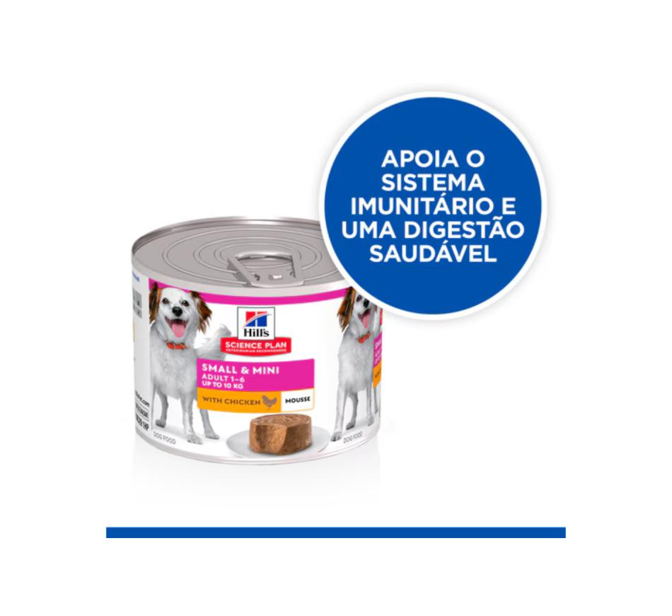 Hill's Science Plan Mousse para Perros Adultos de Razas Pequeñas y Mini con Pollo es un alimento completo para perros adultos de razas pequeñas de 1 a 6 años. Es un alimento húmedo diseñado específicamente para las necesidades únicas de su perro de raza pequeña y mini durante la flor de su vida.