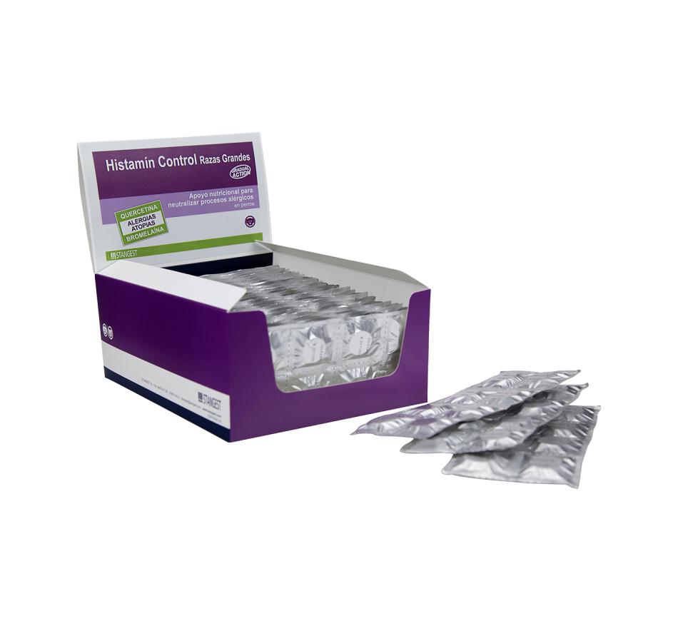 Histamin Control Stangest Blister para perros de razas grandes - Es un suplemento nutricional avanzado especialmente desarrollado para perros de razas grandes con intolerancias a ingredientes y nutrientes. Con una fórmula cuidadosamente elaborada, este producto ofrece un refuerzo eficaz para el sistema inmunitario de su mascota, promoviendo una piel sana y reduciendo las reacciones alérgicas.