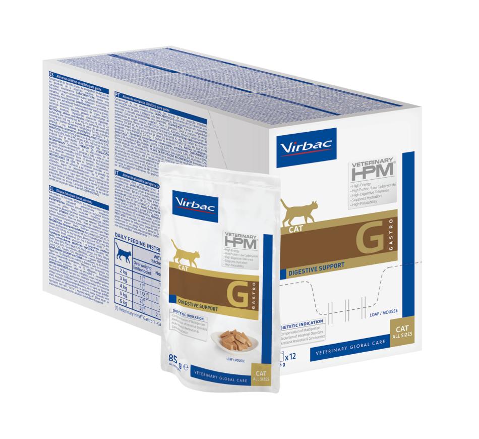 HPM Wet Vet Diets Cat G1 Digestive Support mousse es una dieta veterinaria para apoyar problemas digestivos y/o gastrointestinales, pero también se utiliza para situaciones de convalecencia o recuperación nutricional. siendo la única dieta de recuperación específicamente formulada para gatos.