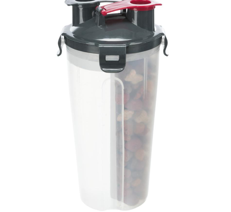 Este Contenedor Portátil para Agua y Pienso se vuelve muy práctico, para ir de paseo o de excursión, ya que consigue preparar la comida y el agua para tu patudo antes del viaje y está listo para ser llevado.