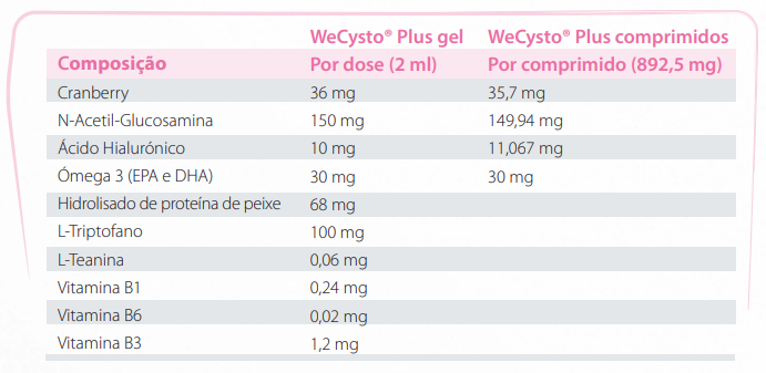 WeCysto® Plus es un alimento complementario desarrollado para apoyar la función urinaria, concretamente en el revestimiento interno de la vejiga y en la inhibición de la fijación de bacterias en el tracto urinario.