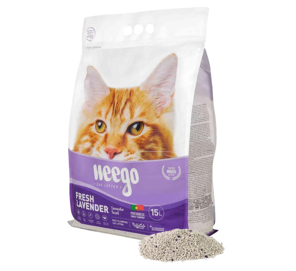 Arena de bentonita natural con aroma a lavanda para gatos