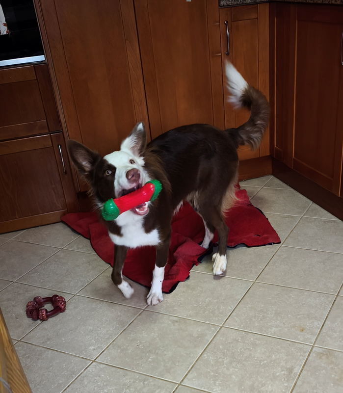 “O brinde foi amor à primeira vista, não tira os olhos dele desde que chegou! 🐶💚