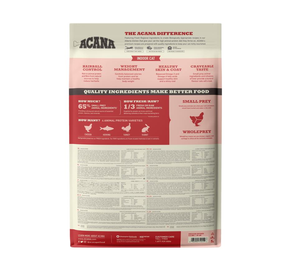 Acana Indoor Entrée Cat Food ajuda a apoiar o controle natural das bolas de pelo, controle do peso e a promoção de um pelo e uma pele saudáveis. Os ingredientes de qualidade tornam a comida melhor, o que, por sua vez, torna o seu gato mais saudável