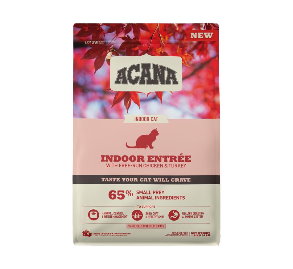 Com um sabor salgado, Acana Indoor Entrée tem os nutrientes que o seu gato precisa com um sabor que eles vão adorar.