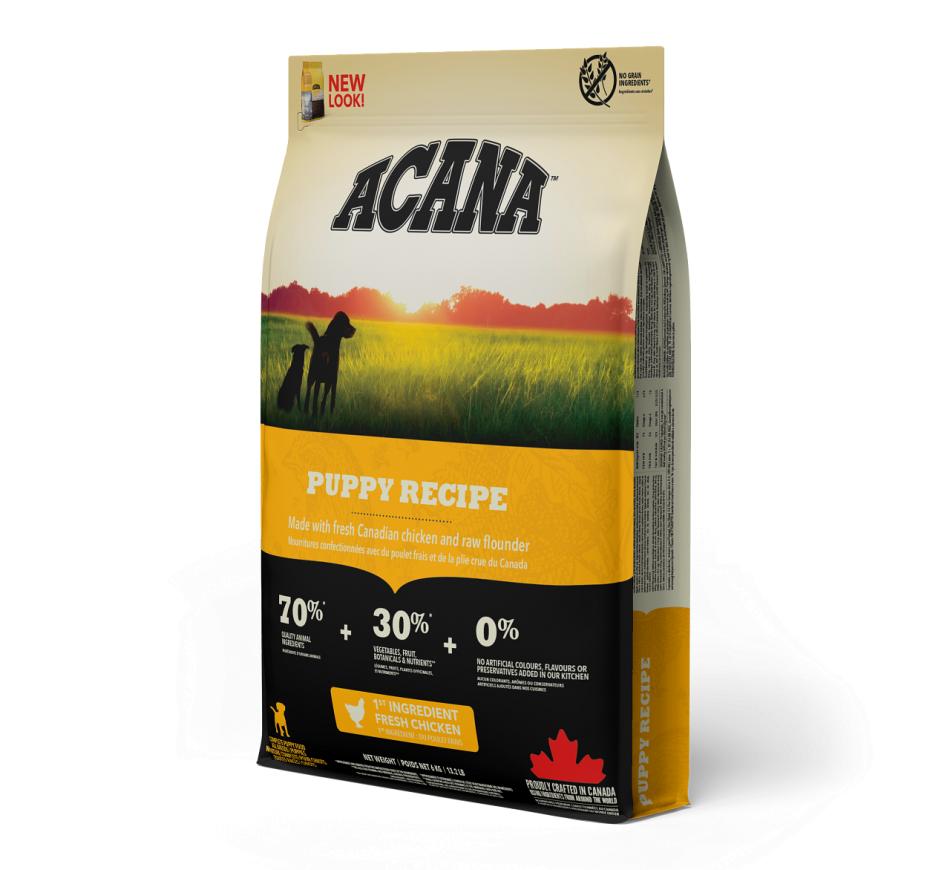 Acana Puppy Recipe está indicado para cachorros cujo peso em adulto esteja entre os 9kg e os 25kg.