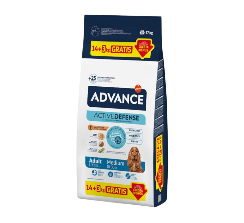 Advance Medium Adult Chicken & Rice é um alimento especialmente indicado para cães adultos (entre 1 e 7 anos) de raça média (com 10 a 30 kg de peso adulto) que contém:
