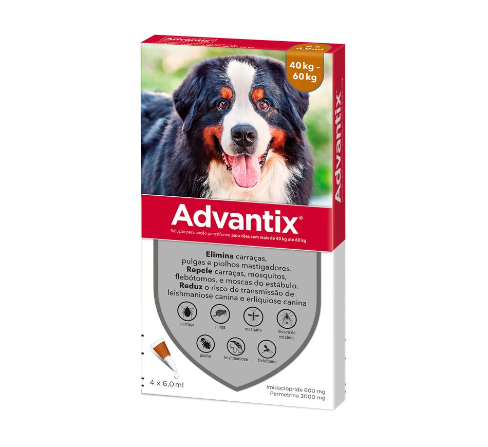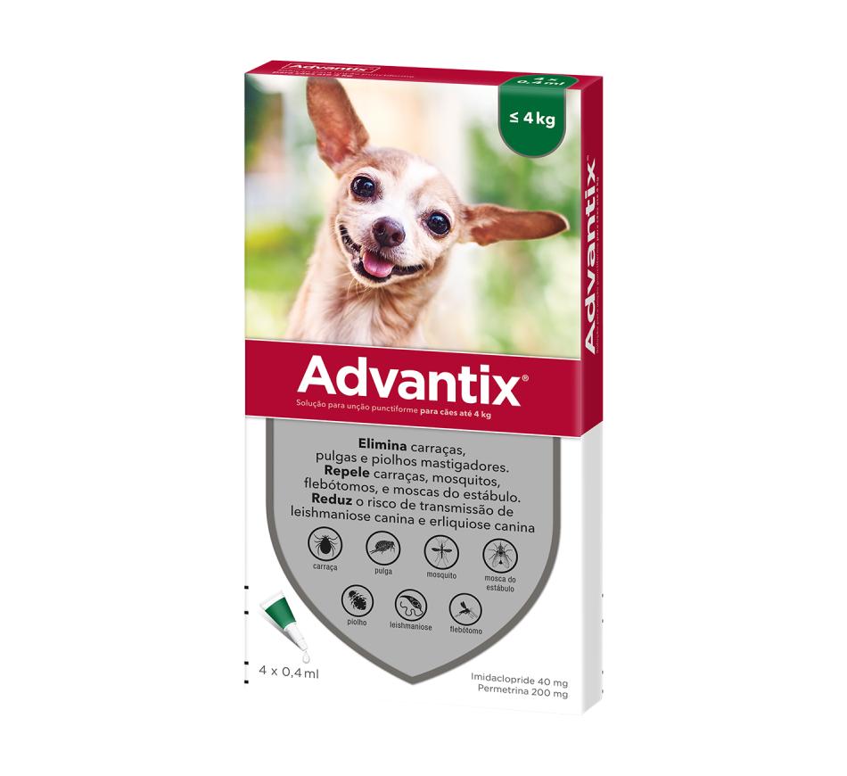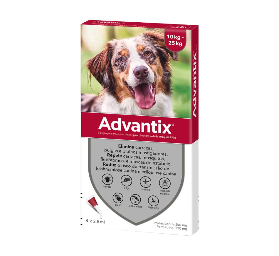Advantix não só impede as carraças, mosquitos, flebótomos e moscas picadoras de se fixarem e picarem o seu cão, como mata pulgas, carraças e piolhos quando estes entram em contacto com o pelo ou a pele do seu cão, não sendo sequer necessário que piquem.