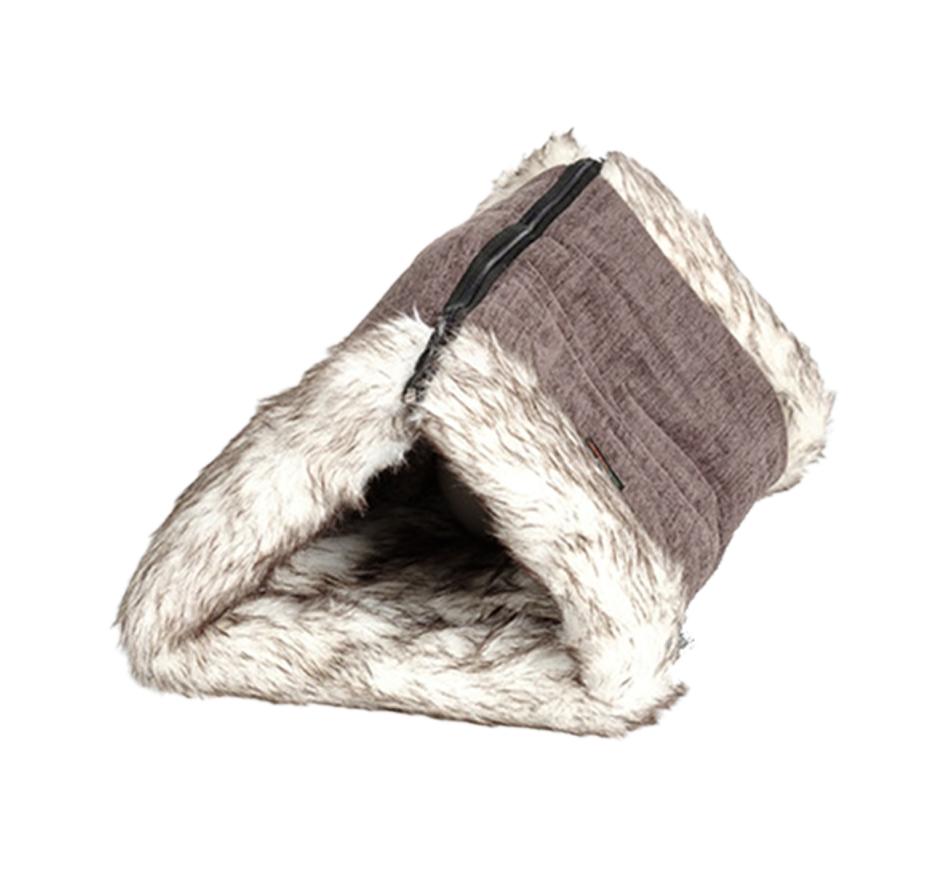 Agui Abrigo Auto-Aquecimento conversível para gato cama conversível 2 em 1 (nicho/ tapete) produzida em pêlo suave e longo.