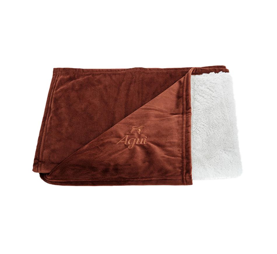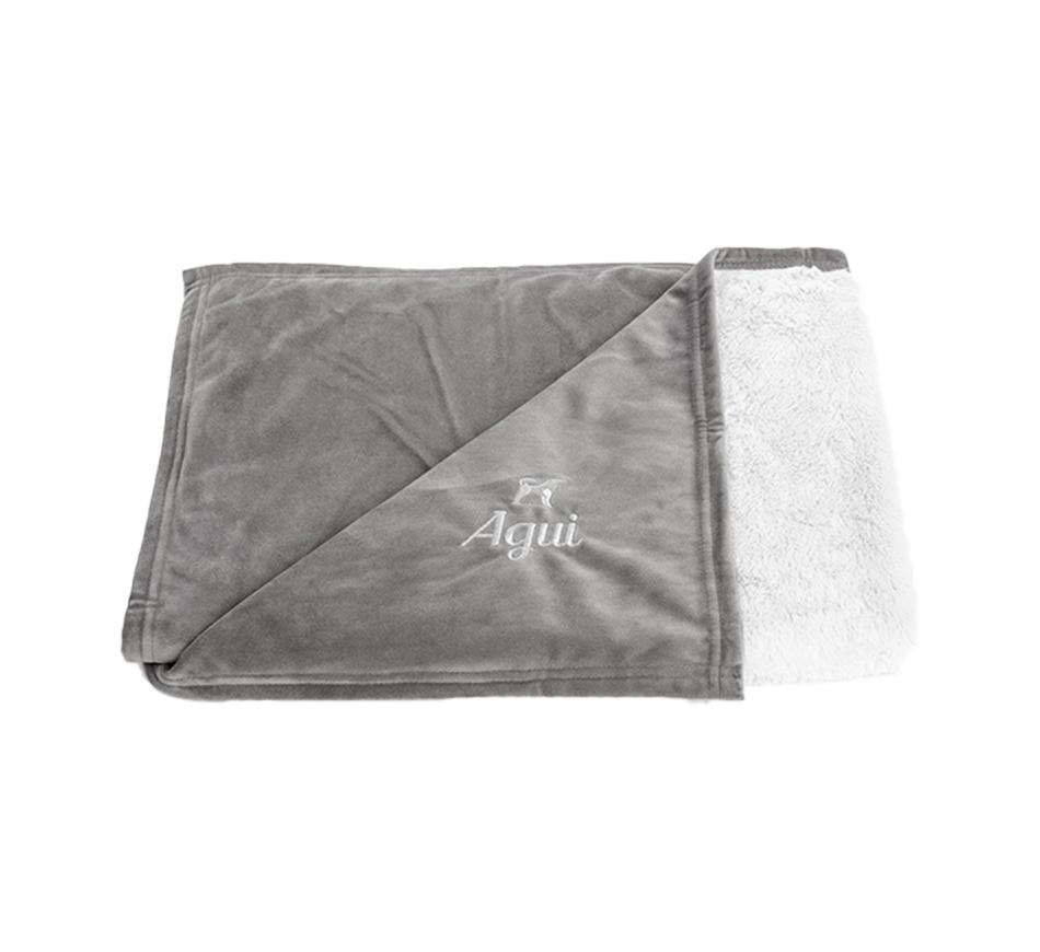 Agui Velvet Manta produzida em suave tecido de veludo na face exterior, com logótipo bordado.