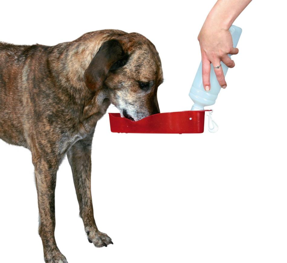 Em dias que quando saímos com o nosso patudo, de maior calor ou em passeios mais longos, temos connosco a prática garrafa com bebedouro, o que nos permite satisfazer a necessidades que eles têm de beber água se o passeio for exigente ou se for um dia de calor.