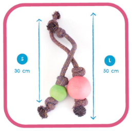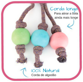 Produzido a partir de borracha natural e com corda algodão natural, faz com que seja um ótimo brinquedo de mordida e de jogar, atirando a bola para o seu amigo poder ir buscar.