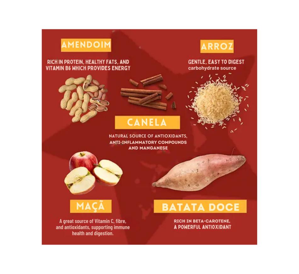 Pawtato Peanut, Apple & Cinnamon Sticks são deliciosos snacks hipoalergénicos em formato de palito combinam batata-doce e farinha de arroz naturalmente doces com manteiga de amendoim, maçã e canela de verdade, para uma mastigação satisfatória e de fácil digestão.