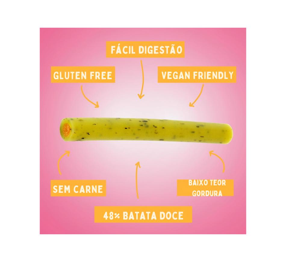Pawtato Espinafre e Kale Sticks são feitos com batata doce nutritiva e palitos de arroz com recheio de espinafre. Sociedade Vegetariana e Sociedade Vegana Aprovadas.