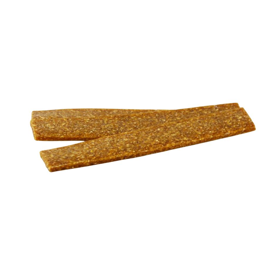 Tiras vegetais macias com aroma apetitoso. Ideal para uma recompensa em treino ou bom comportamento, são um snack muito desejado pelos cães, logo excelente para treinar.