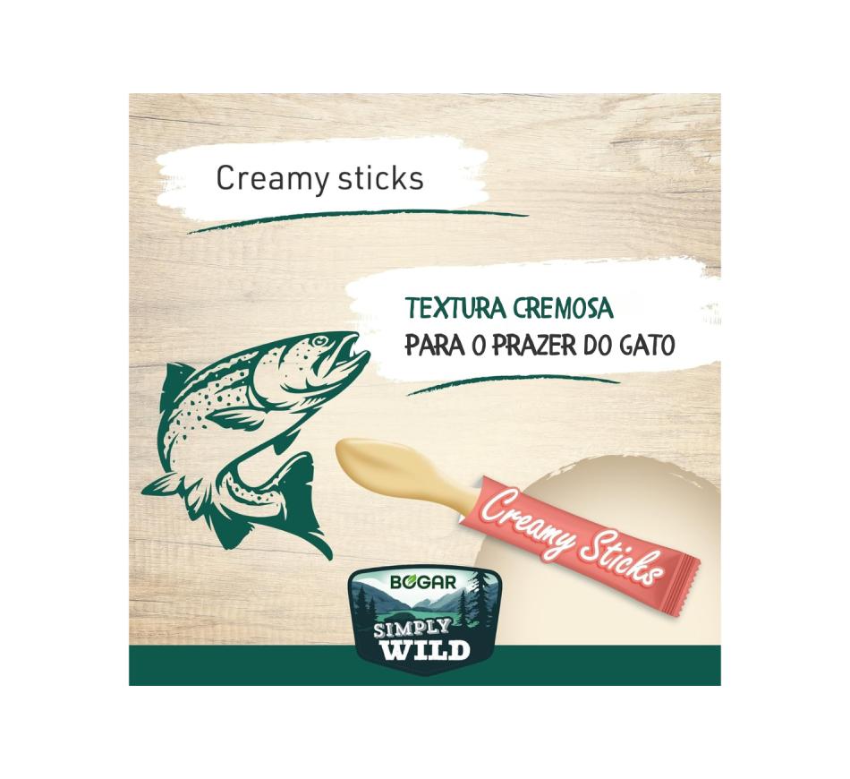 Bogar Simply Wild Creamy Sticks Salmão Gato oferecem uma experiência irresistível de sabor.