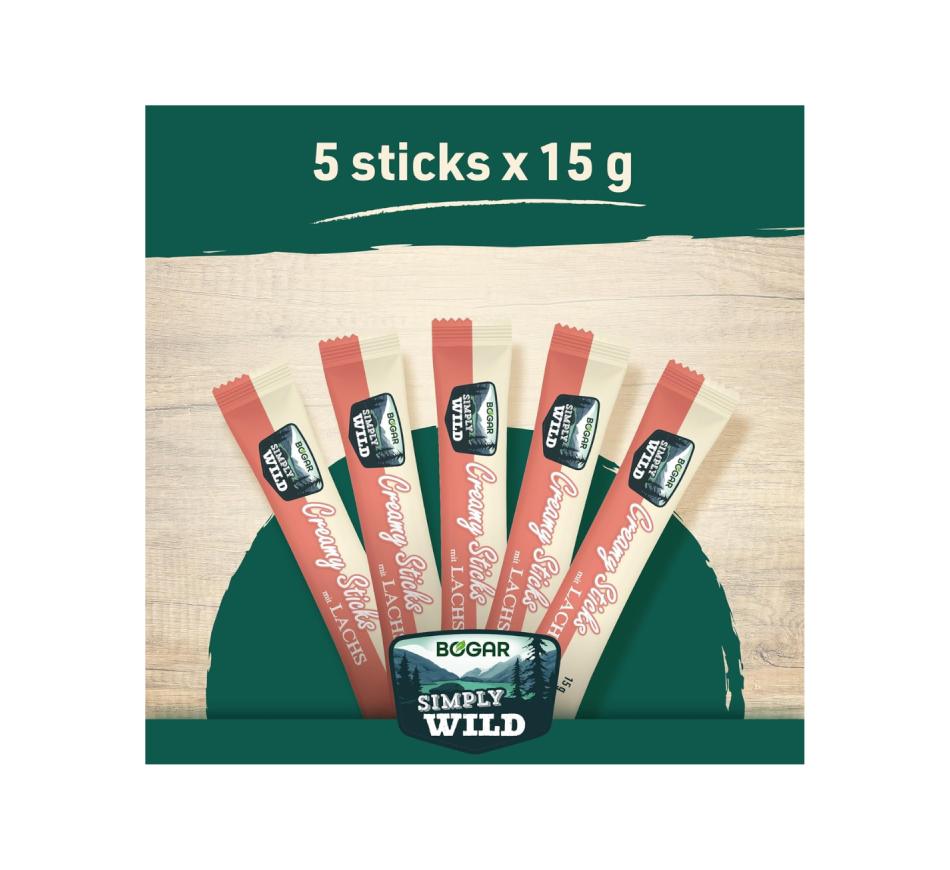 Bogar Simply Wild Creamy Sticks Salmão Gato são um alimento de alta qualidade para cães, ideal para complementar a dieta habitual do seu pet