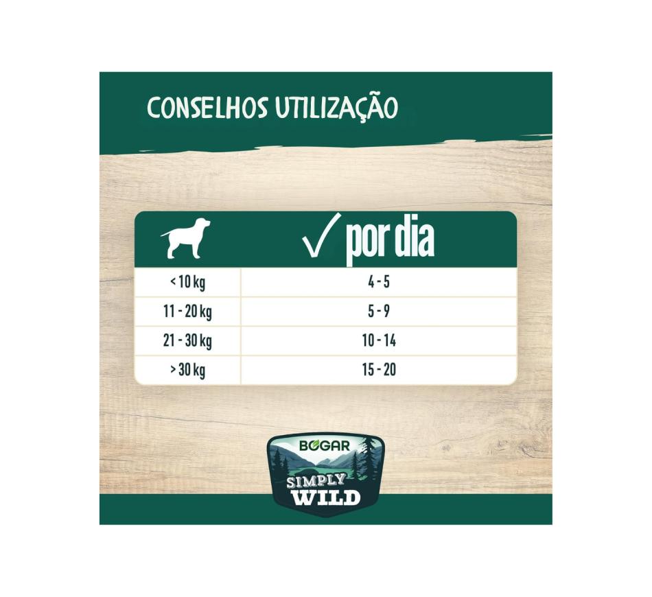 Bogar Simply Wild da Bogar são um alimento de alta qualidade para cães, ideal para complementar a dieta habitual do seu pet