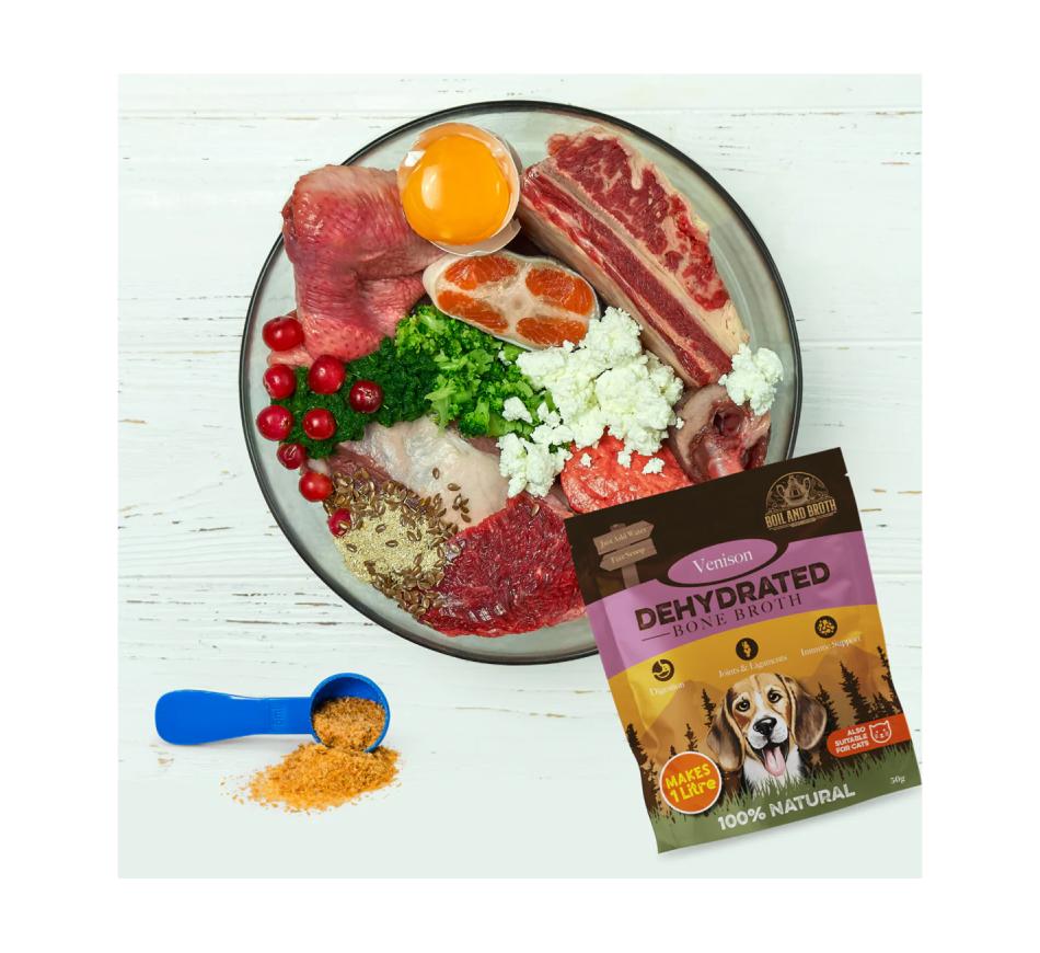 Descubra o sabor e os benefícios do Boil and Broth Caldo Ossos Desidratados Veado, um suplemento de alta qualidade projetado especialmente para cães e gatos. Este caldo desidratado é mais do que um simples alimento; é uma fonte concentrada de nutrientes essenciais que promove a saúde e o bem-estar do seu melhor amigo.
