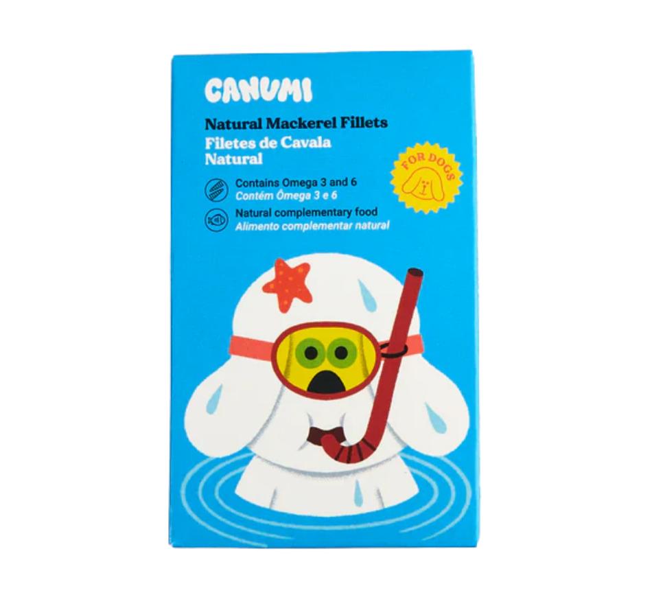 Canumi Cão Filete Cavala - Os filetes de cavala Canuni, sem sal e conservados em caldo de peixe, são uma refeição saudável e nutritiva para cães.