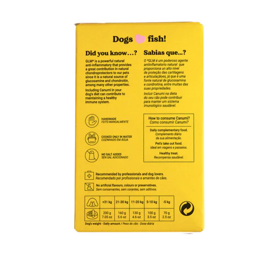Um só ingrediente, inúmeros benefícios para a saúde do teu cão. Um snack de peixe que é delicioso mas sobretudo representa um boost nutritivo para a sua alimentação diária.