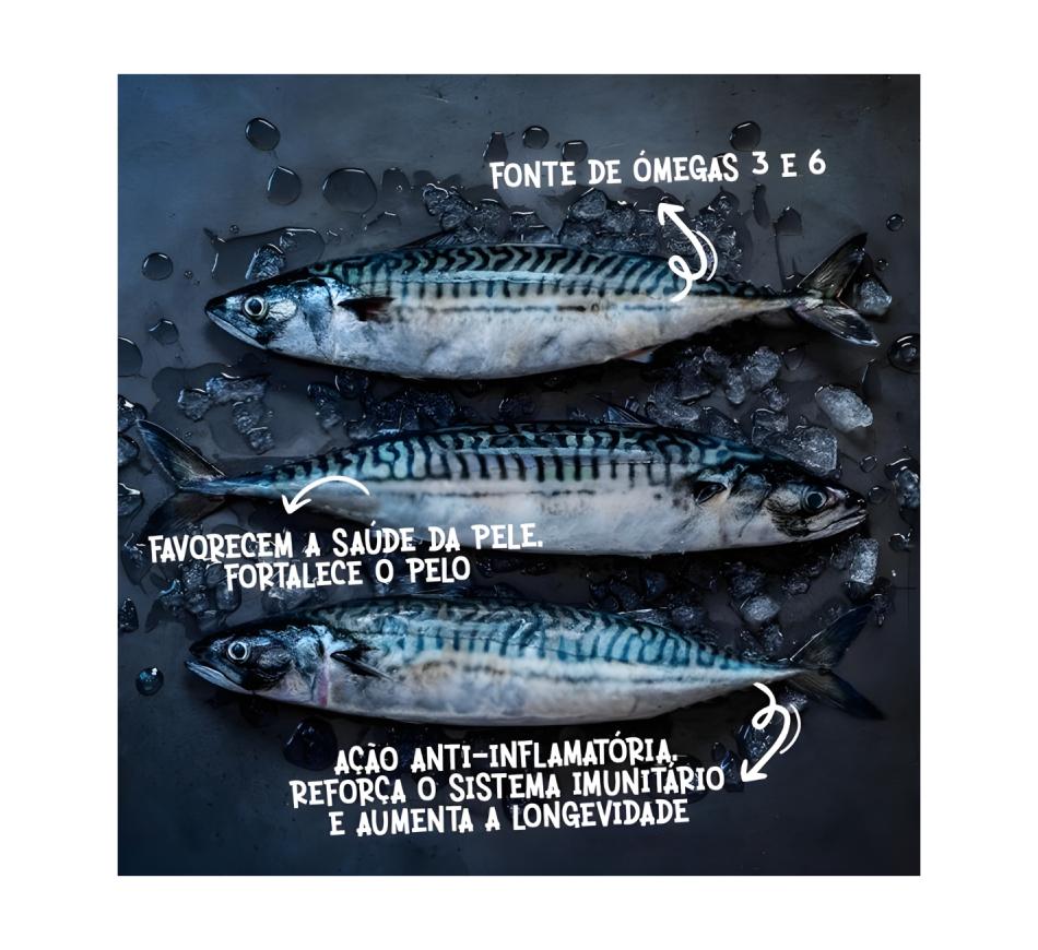 Alimento húmido nutritivo, completo e equilibrado, com alto conteúdo de iodo favorece o metabolismo dos nossos cães, elaborado com cavala, ingredientes 100% naturais. Indicada para gatos é um snack de peixe que é delicioso, um boost nutritivo para a alimentação diária.