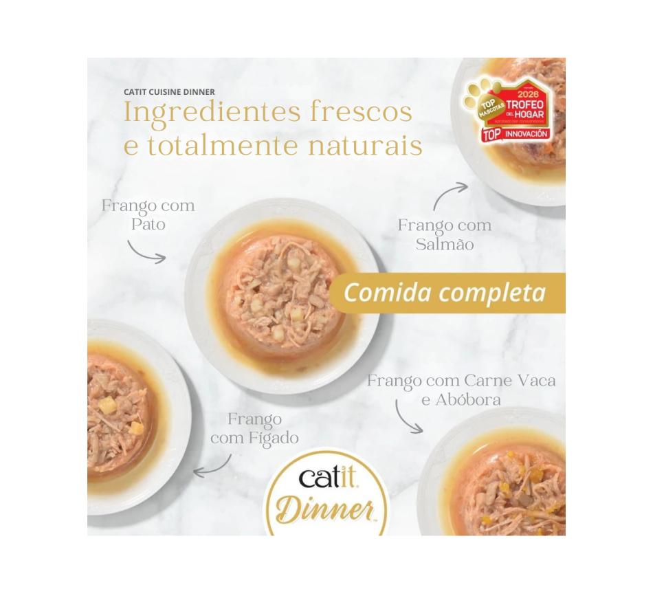 Catit Cuisine Dinner Frango é um alimento húmido de dupla camada, feito com ingredientes frescos e servido num delicioso molho. Este alimento premium para gatos é natural, rico em proteínas e sem cereais, com vitaminas e minerais adicionados para uma nutrição perfeitamente equilibrada.